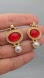 Gold Tone Red Cabochon Faux Pearl Drop Stud Pierced Earrings