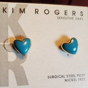 Gold Tone Teal Kim Rogers Heart Theme Stud Earrings