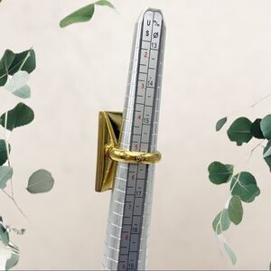 Gold Tone & White Geometric Fashion Ring by Dyrberg/Kern of Denmark, Size 5.5.