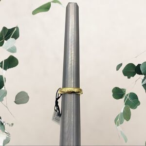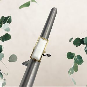 Gold Tone & White Geometric Fashion Ring by Dyrberg/Kern of Denmark, Size 5.5.