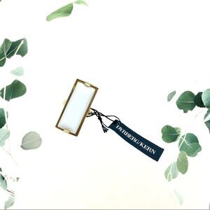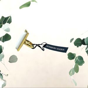 This Dyrberg/Kern of Denmark statement ring from the kaleidoscope collection is brand new with tags. The “Manadis” ring is gold tone and features a large white rectangular prism that is approximately 30mm by 12mm. Nice piece of geometric costume jewellery.