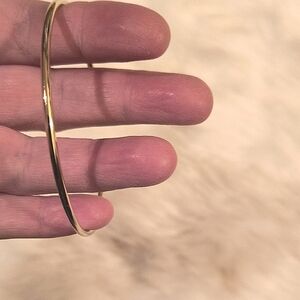 Elegant gold tone bangle with marble accents. Features a round and square design.