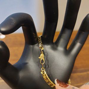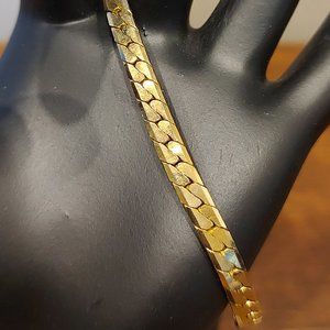 Bracelet features a gold toned finish (Faux Gold), snake chain design, and a lobster claw clasp.