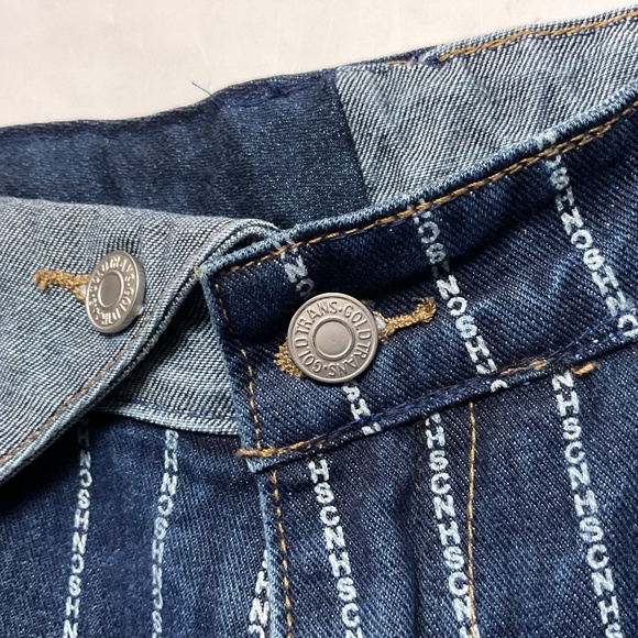 Gold Trans Jeans Spell Out Stripes Waist 29 Blue High Rise Dark Wash Baggy