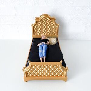 Gold Tufted Miniature Chesterfield Bed Queen Size 1:6 Scale Barbie Dollhouse