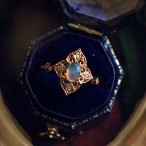 Color: Natural opal stone reflects bluish light with slight inclusion that proves its authenticity, the color of the band is gold