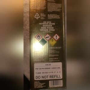 Product Type: A bulk nitrous oxide (N2O) tank for culinary use, not a small cartridge.