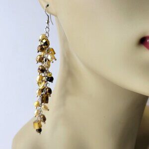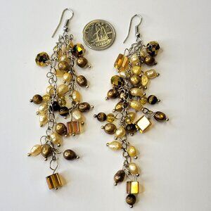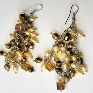 Gold and Beige Pearls and Bead Earrings Light Gold Brown Earrings