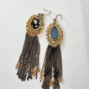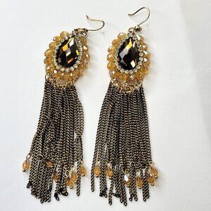 Amber Hued Crystal Rhinestone Tassel Earrings
