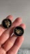 Elegant gold and black medallion earrings perfect for any occasion. Add a touch of sophistication to your look. A little patina on the back.