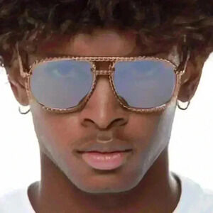 Stylish men's sunglasses featuring a luxurious gold frame and sleek black lenses. Perfect for adding a touch of elegance to any outfit.