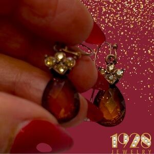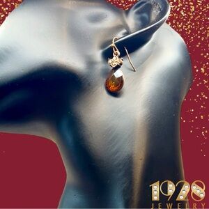 Elegant teardrop earrings by featuring a rich brown gemstone set in a gold-tone design. Perfect for adding a touch of sophistication to any outfit.