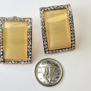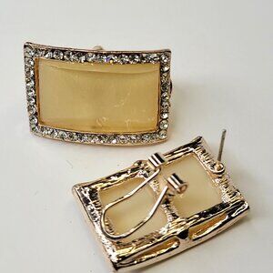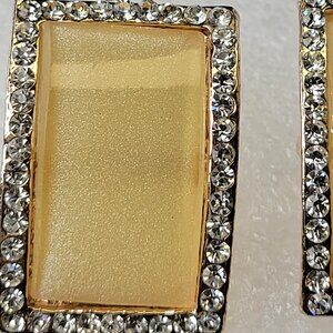 Gold and Crystal Rectangular Earrings with Leverback Closure