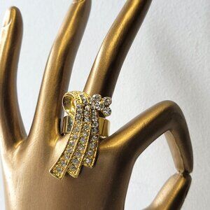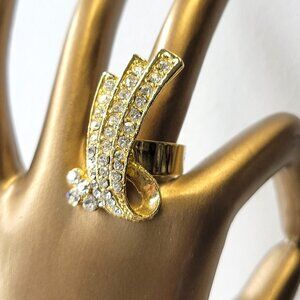 Gold tone ring with sparkling rhinestones
