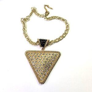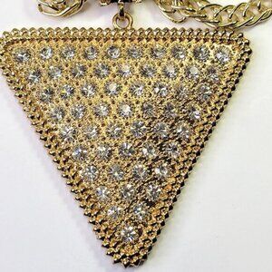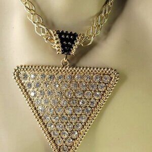 Gold and Crystal Triangular Pendant Bib Choker Necklace
