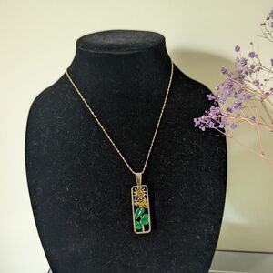 Elegant gold necklace featuring a striking green pendant. Perfect for adding a touch of sophistication to any outfit.