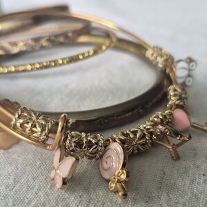 gold and pink charm bracelet set, perfect for adding a touch of sophistication to any outfit.