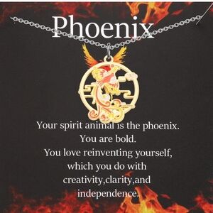This exquisite necklace features a gold and red phoenix pendant, symbolizing rebirth and renewal. The intricate design showcases the mythical bird in flight, suspended on a delicate chain. A perfect blend of elegance and symbolism, this piece is a standout addition to any jewelry collection.