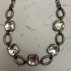 Beautiful, round necklace in classic design. Great for work or special occasions. Thick and sturdy metal with thick clasp that works well, no sticking. Necklace is 19” from chain to chain, or 23.5” if you include the small chain that hang from where you clasp the necklace.