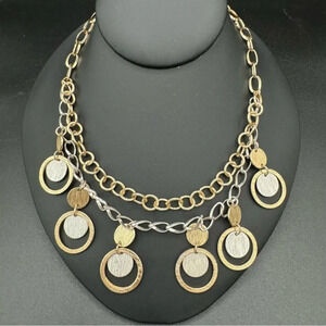 Gold and Silver tone Geometric Circle Statement Necklace