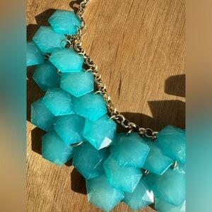 Gold chain with teal gems. Shortest length is 45 cm. Longest length is 53 cm.