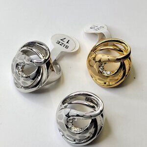 Gold and White Swirl Crystal Ring Size 8.5 - 8.75 Fashion Cocktail Ring