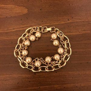 Excellent condition costume gold colored and pearl three chain bracelet purchased from Laura Canada. Original owner - Smoke/pet free home.