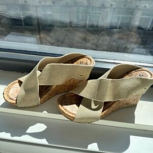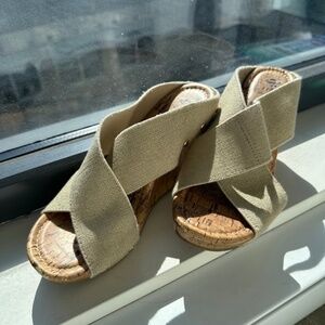 Gold heeled espadrilles / sandals with wooden platform size 7