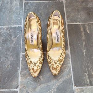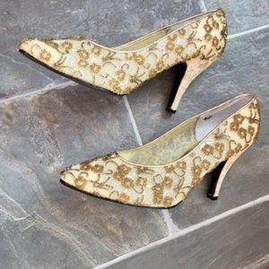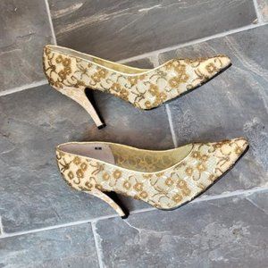 Dress pumps, gold lace, size 8 1/2, 3 1/2 inch heel.