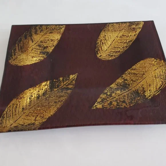 Gold leaf, brown rectangular plate