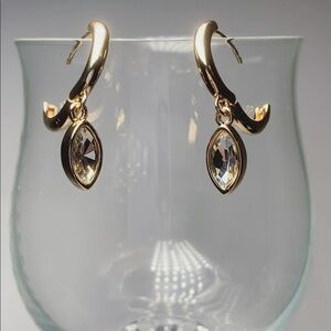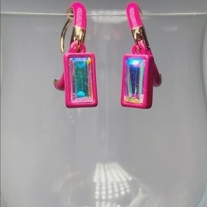 Fashion Jewellery -Gold pink and blue hoop dangling Gem BP Earings