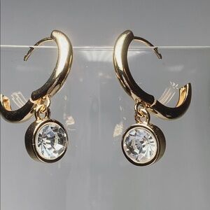 Gold pink and blue hoop hanging gem BP Earrings