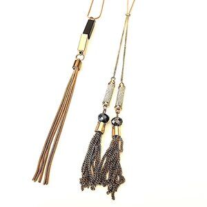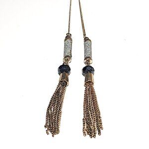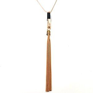 33 inches long with an additional 2 inch extension chain. The tassel section extends down 6.5 inches