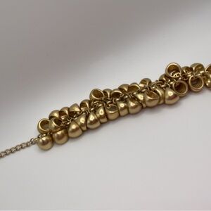 Beautiful vintage gold bracelet that has an abundance of golden beads hanging from a chain. This statement piece is versatile sizing with a 2” chain extension. Looks fabulous with almost anything dress up or down