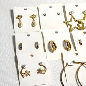 Bundle of 11 pairs of gold-tone pierced earrings, one of each pair as shown