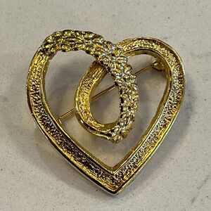 This elegant gold toned heart floral brooch adds a touch of sophistication to any outfit. Perfect for special occasions or everyday wear.