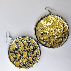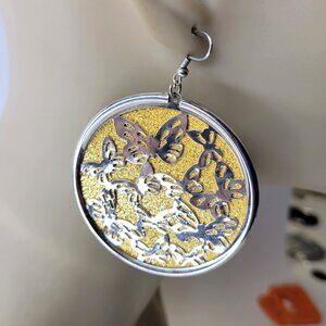 Gold with Butterfly Motif Large Round Earrings