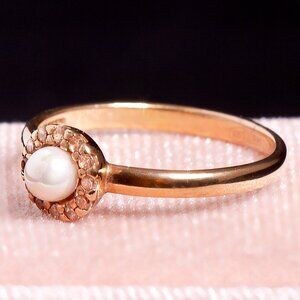 Gold-Plated 925 Sterling Silver Pearl Ring • CZ Accents • Size 6 Dainty Ring