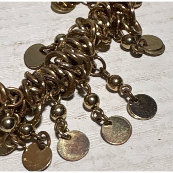 Gold-Tone Chain Link Bracelet With Dangling Discs Accent Stretch Braclet