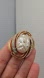 At the center sits a large faux pearl, surrounded by two rows of swirling gold and sparkling rhinestones.