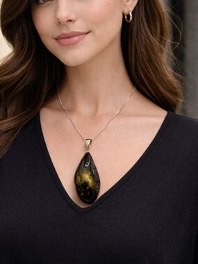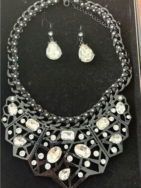 Gold-Tone NECKLACE and EARRINGS set with URANIUM glass crystals