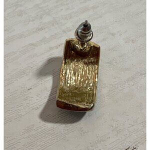 Gold-Tone & Turquoise Beige Enamel Curved Rectangle Half Hoop Earrings Stunning