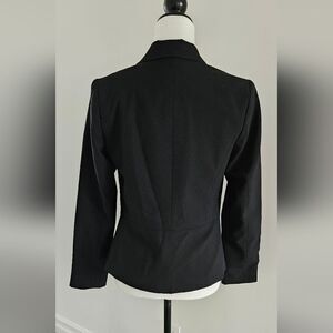 form flattering/ fitted jacket, collar, 4 gold buttons, beautiful burgundy lining inside
