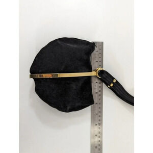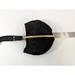 Goldco Italy Suede Sac Purse Clutch Handbag Black Small Bag Gold Metal Hardware