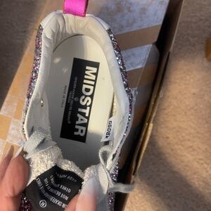 Mid-Star glitter-detail leather sneakers Worn twice like new
