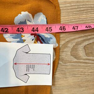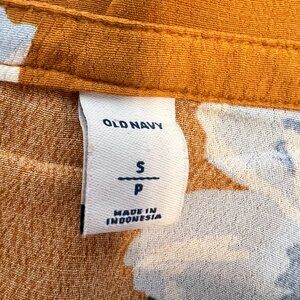 This Old Navy dress exudes feminine charm with its sunny yellow-orange base and delicate blue and white floral print. The long sleeves, flowy tiered design, empire waist, and keyhole neckline create a soft and trendy silhouette. Perfect for casual summer outings! Important: Old Navy sizes may vary, so please check the measurements provided.