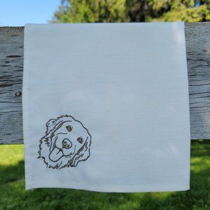 Retriever face is approx. 3.5" x 3.5", napkins are 19.5" x 19.5".
