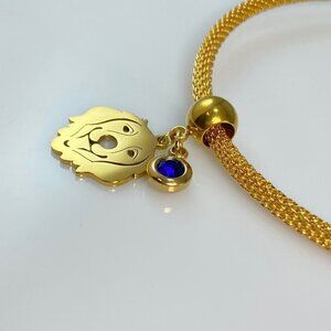 Materials: Gold Plated stainless steel and birthstone is cubic zirconia on stainless steel