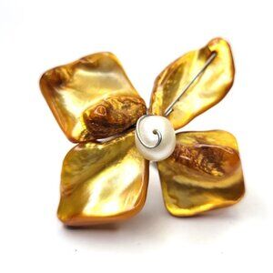 Golden Yellow Sea Shell Freshwater Pearl Bead Asymmetric Flower Adjustable