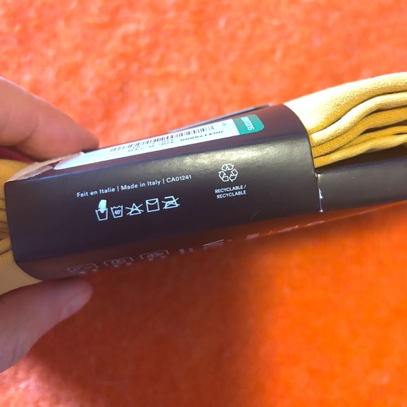 Golden yellow solid essential tights made in Italy, new with tags. Soft, stretch recycled polyamide blend, elastic waistband, 93% polyamide and 7% elastane, 100 denier. Marked size S/M Small / Medium. Please see the picture with size chart for measurements. This item comes from a smoke free, pets friendly home. Recycled bags/box used when possible. Please, let me know if you'd like any additional pictures and/or measurements or other info. Thanks for watching!